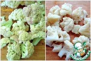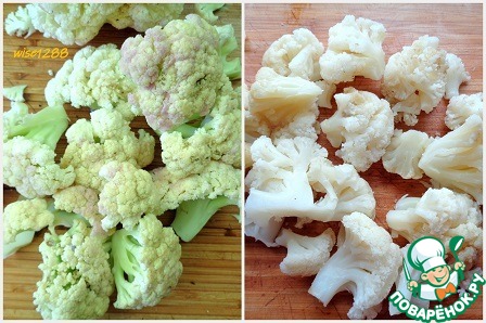 Цветную капусту разобрать на соцветия, отварить 5 минут с момента закипания.