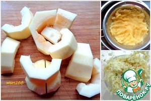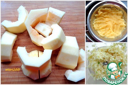Очистить кабачки, натереть на мелкой шинковке, отжать сок. Чеснок измельчить.