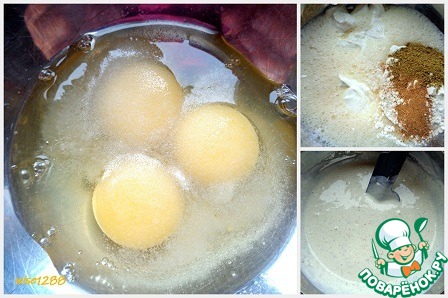 Приготовить тесто: яйца посолить, взбить. Добавить сыр, сметану, хмели – сунели, мускатный орех, муку, разрыхлитель – перемешать до однородности.