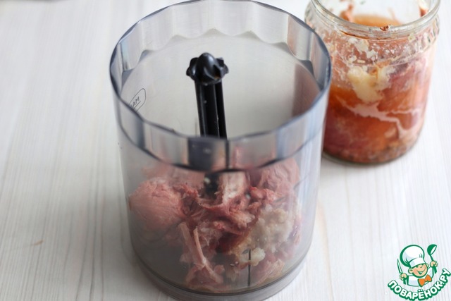 Тушенку пробить в блендере до ровной, мелкой структуры. Хочу обратить внимание, соль и перец добавлять не следует, тушенка готовая к применению.