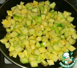 Кабачки почистить, удалить семена. Нарезать небольшими кусочками. Обжарить на растительном масле 5 минут.