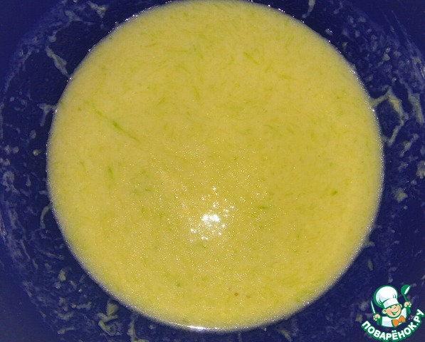 На мелкой терке натереть лук и очищенный кабачок. Отжать сок.