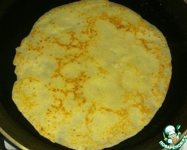 Затем перевернуть блин и жарить полминуты. -