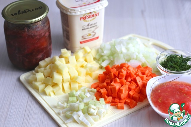Ингредиенты для «Тушеные овощи с домашней тушенкой»: