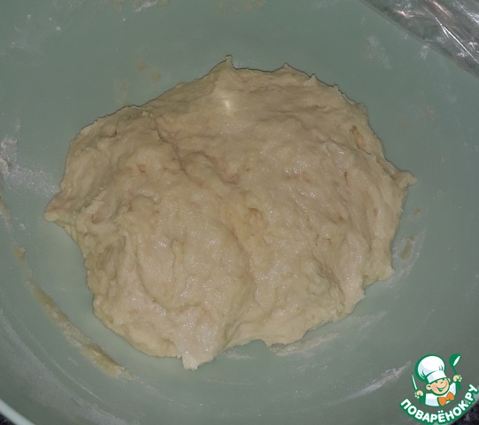 Просейте муку в миску с ингредиентами и замесите тесто (указанного количества муки достаточно, не волнуйтесь, тесто будет липковатым, так и должно быть)