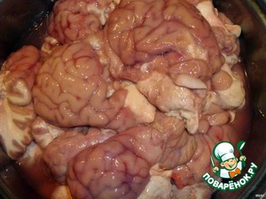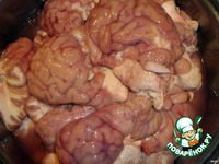 Добавляем нарезанные мозги, посыпеам солью и пречиком и обжариваем все вместе, периодически помешивая, минут 20-30 (до готовности). |