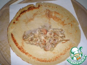 Начинку я добавляла сразу, пока жарится следующий блин. -