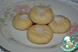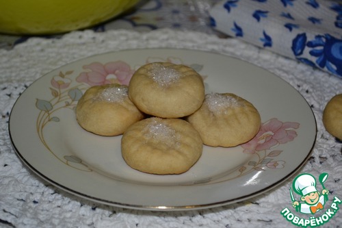Скатать из теста 36 шариков, положить на смазанный противень. Прижать вилкой и слегка посыпать сахаром.