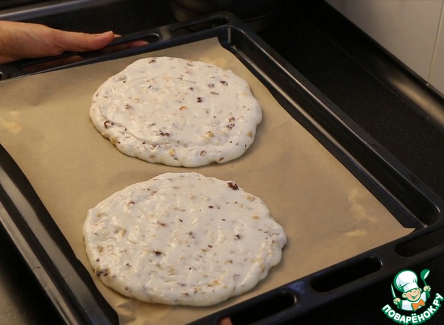 И желательно отсаживать коржи на расстоянии друг от круга. Во время выпечки они слегка расширяются. -