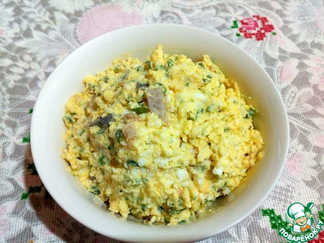 Добавить мелко нарезанные яйца. все хорошо перемешать.