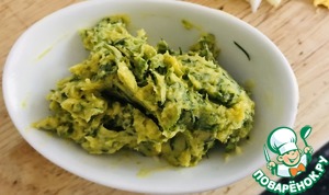 Мягкое сливочное масло соединить с мелко нарезанной зеленью и горчицей (я делала вилкой)до однородной массы.