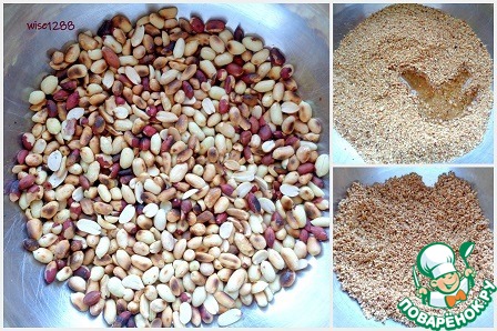 Большая часть времени приготовления печенья уходит на подготовку арахиса. Арахис перебрать, поджарить на сухой сковороде до зарумянивания 5 – 7 минут. Очистить от шелухи, измельчить в блендере, добавить растительное масло, перемешать.