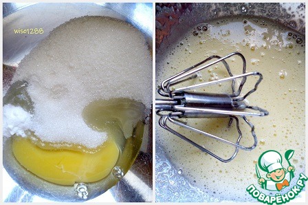 К яйцу добавить сахар и ванилин. Взбить венчиком.