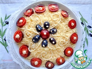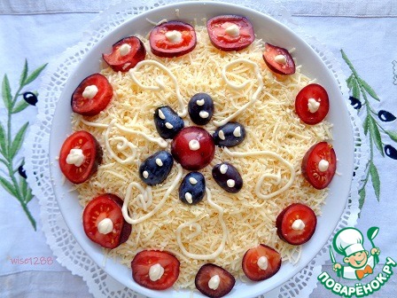 Завершить слоем сыра и оформить на свое усмотрение. Приятного аппетита!!!
