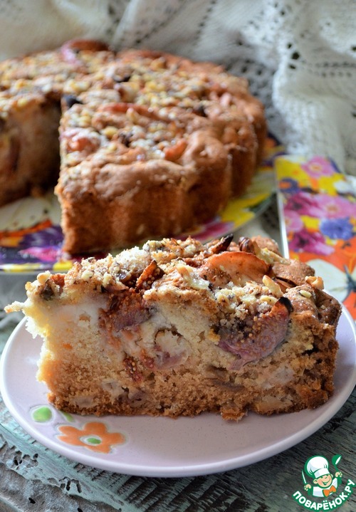 Красивый и яркий, как госпожа Осень, богатый и щедрый по вкусу... На большую компанию... Яблоки, груши, инжир в нежном бисквитном тесте, под сахарно-ореховой посыпкой, чудо как хорош... Случился тут у меня день рождения, получила я от вас, дорогие Поварята, подарки и поздравления на стене, очень тёплые пожелания в отзывах... благодарности моей нет предела... Спасибо, милые мои. Вот и решила я испечь пирог, чтоб угостить вас.