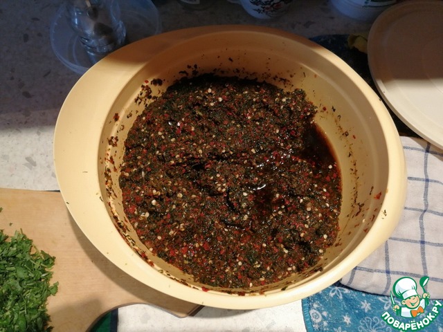 Всем Привет! решил поделиться рецептом аджика не аджика не знаю, в общем вкусно!))А главное ВАРИТЬ НЕ НУЖНО, 20 минут и всё готово, не помню откуда рецепт может кто-то видел на просторах инета так что сильно не ругайте.