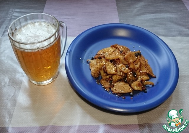 Уставшим от варёных креветок посвящается. Предлагаю попробовать кальмаров с перцем чили. Популярная китайская закуска. Подсмотрел на одном сайте. Немного придётся повозиться, но думаю друзей порадуете и удивите.