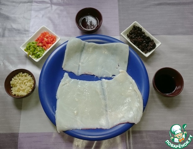 - Кальмар (чищеные тушки среднего размера) — 4 шт