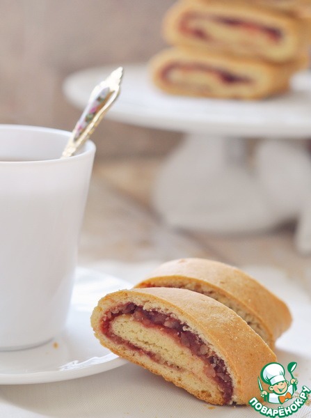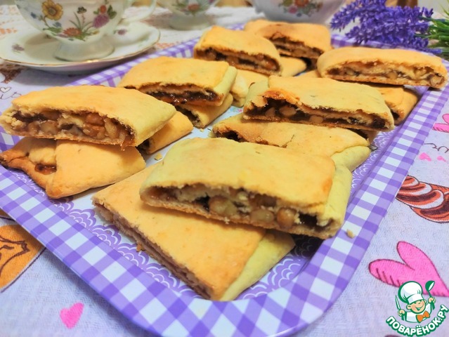 Очень вкусное песочное печенье с начинкой из варенья и орехов. Отличная выпечка к чаю на каждый день. Просто и вкусно, заходите угощайтесь!