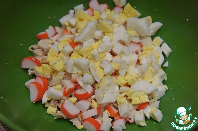 Салат с крабовыми палочками и курицей