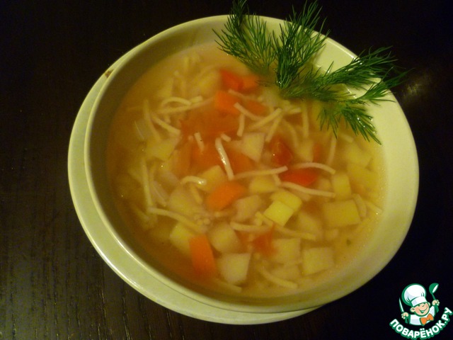 Если готовите суп впрок, то лучше спагетти отварить отдельно и просто добавлять в тарелку при подаче.