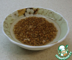 Гречневую крупу промыть и залить кипятком минут на 10.