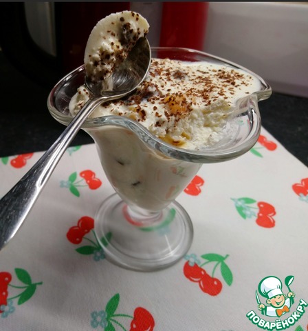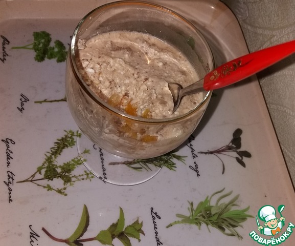 Творог смешать с кокосовой стружкой и какао, затем с молочно-фруктовой смесью и хорошо перемешать.