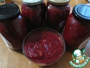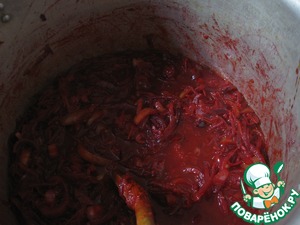 Перемешиваем и тушим на медленном огне минут 20-30, периодически помешивая. (приношу извинения за качество фото, - все заготовки делаю в вечернее время)