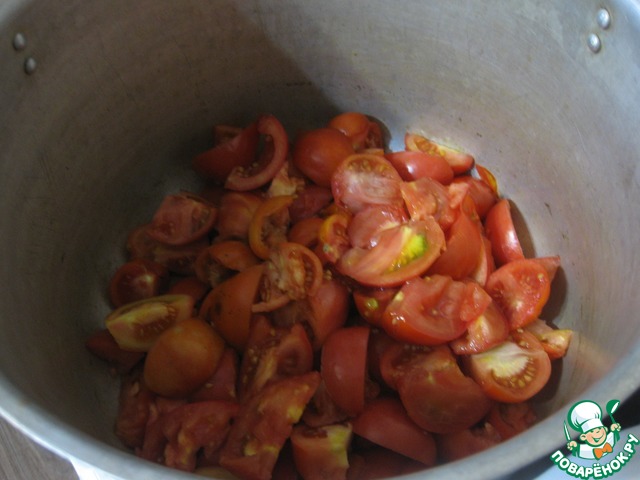 Чистые помидоры можно перекрутить на мясорубке, я же просто порезала их.