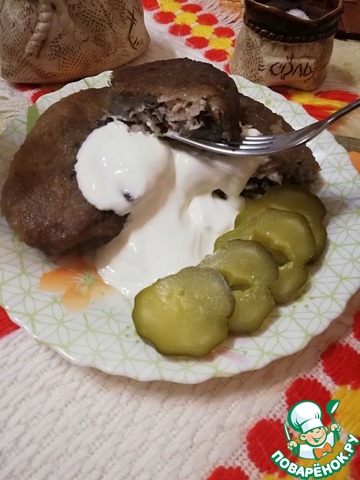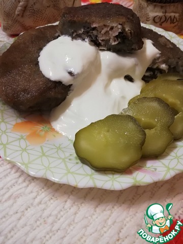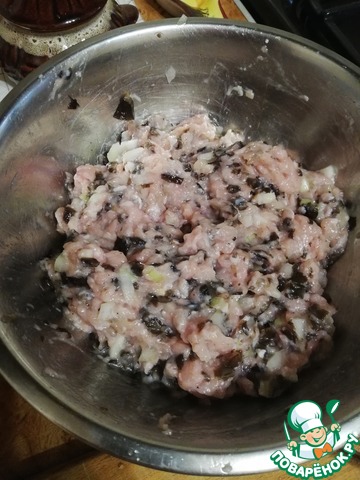- Грибы (в идеале лесные грибы, у меня отварные опята, прокрученные через мясорубку) — 150 г
