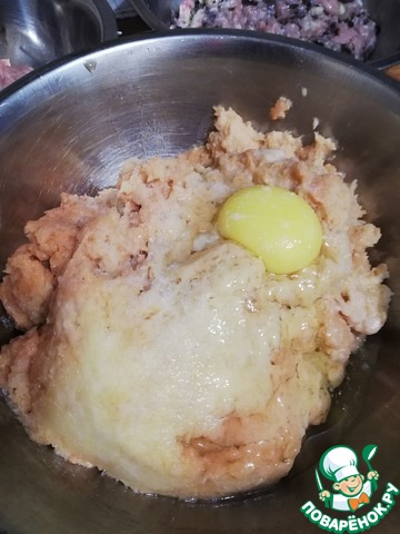 К картофельной массе добавляем яйцо, солим по вкусу. Всё хорошо перемешиваем.