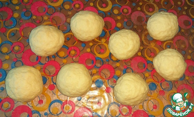 Каждую часть теста раскатать в круг толщиной 3-4 мм.