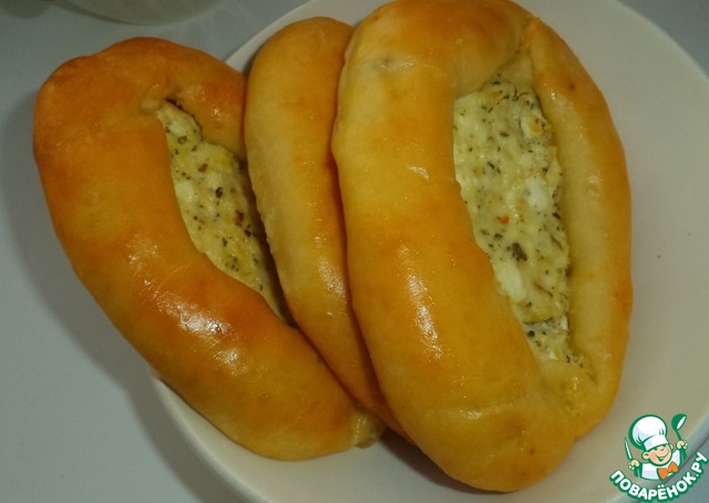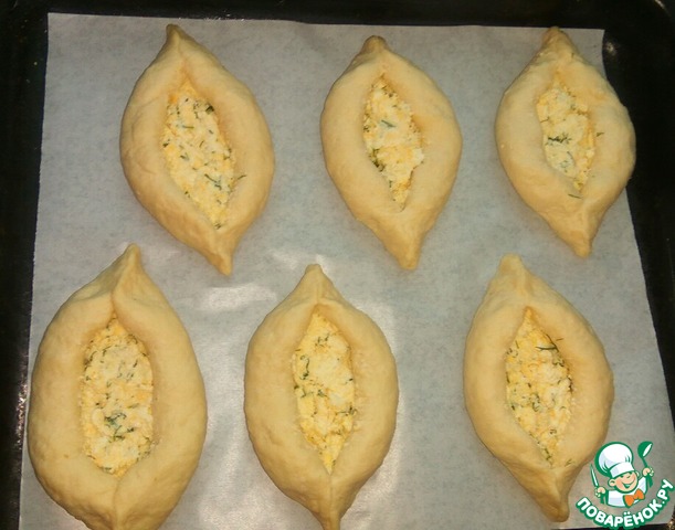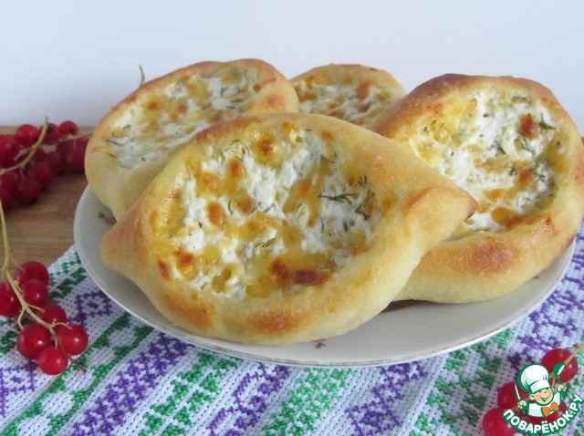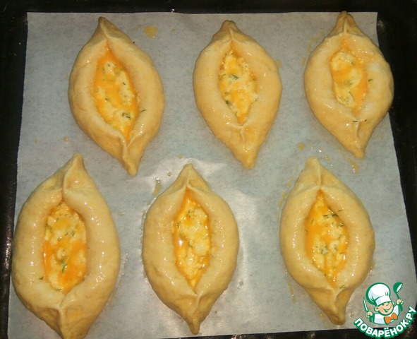 Рецепт «Открытые пирожки с творогом и сыром»: