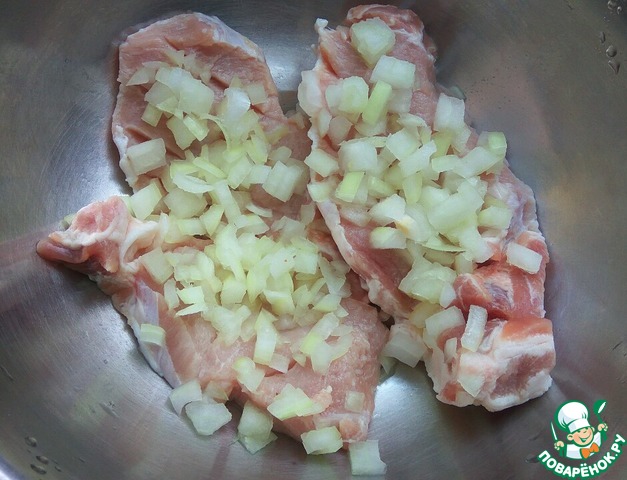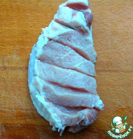 Я взяла корейку на кости. Разрезала на 3 порционных куска, обрезала кости. Помыла, просушила бумажным полотенцем.