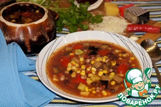 Суп интересный, очень ароматный из-за грибов. Купила замороженные грибы ассорти и специально для данного рецепта дикий черный рис. Муку и тимьян не добавляла, я кладу достаточно много продуктов, чтобы суп получался очень густым, так чтобы ложка стояла . Мое семейство так любит. Благодарю за рецепт вкусного супа!