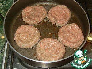 Приплюснуть рукой, придавая круглую форму, и сделать углубления сверху. Слегка обжарить биточки снизу.