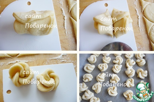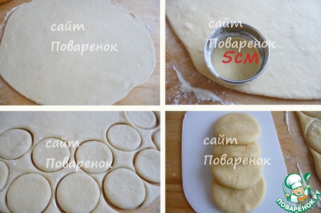 Для формовки булочек, взять четыре кружка, наложить их друг на друга.