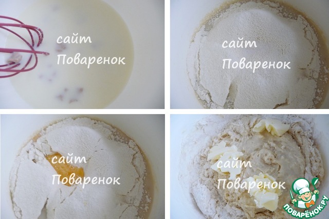 Включить замес теста крюком, когда все ингредиенты смешались, добавить мягкое сливочное масло.