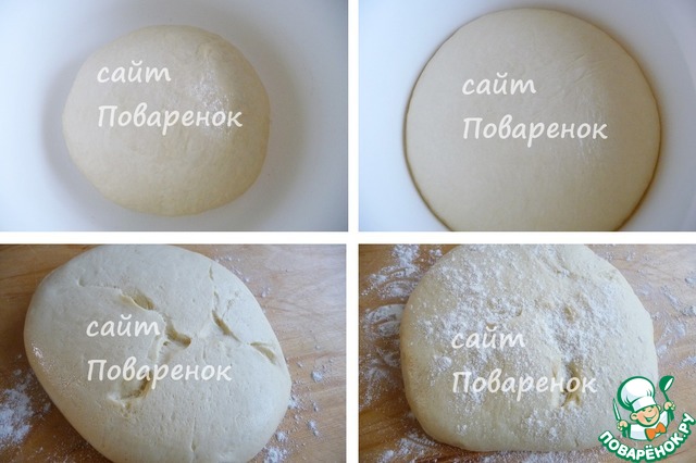 Подошедшее тесто выложить на рабочую поверхность, присыпанную мукой, не обминать.