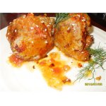 Концы сетки перевязать ниткой. Рулет поместить на противень, застланный пергаментом. Запекать рулет при t170-180С до готовности. Примерное время запекания 50-60 мин. Все будет зависеть от диаметра и величины вашего рулетика. При запекании рулета, выделится куриный жирок, этим жиром можно полить поверхность рулета.