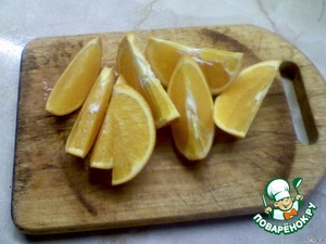 Помыть апельсин и нарезать его на дольки.