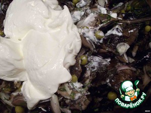 Заправляем подсолнечным маслом (я салатик разделила на 2 части - некоторые у меня не едят сметану)))