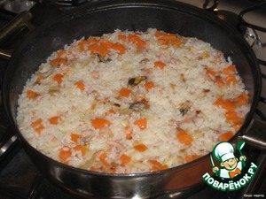 Для любителей морепродуктов! :-) Все как в обычном плове, только вместо мяса - морепродукты... Прямо замороженные. Еще добавляю немножко соевого соуса вместо соли и чайную ложку шафрана... Вкусняяяяяяяяятина! :-)