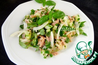 Готовый салат спокойно выдерживает ночь в холодильнике и ничуть не хуже на следующий день. В жаркие летние дни это отличный обед и ужин, ну а зимой - прекрасное воспоминание о летних каникулах.