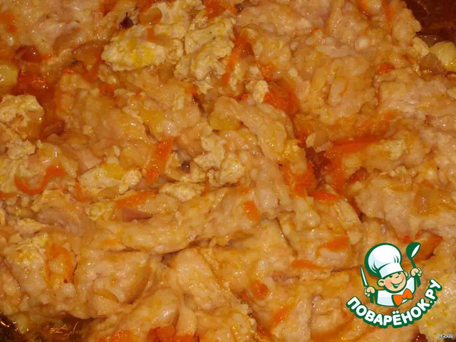 Запекаем нашу корзиночку или "лукошко" в духовке. Достаем, "продавливаем" дно и выкладываем на дно наш фарш.