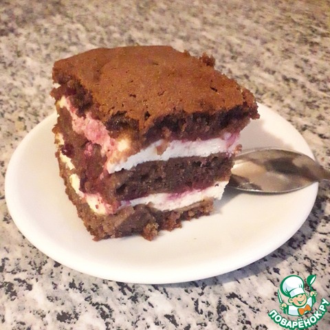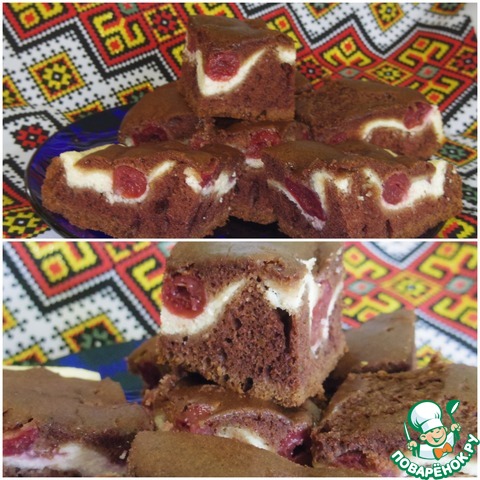 Рецепт «Шоколадное пирожное с творогом и вишней»: