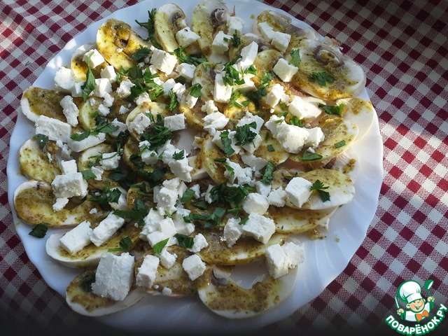 Рецепт «Карпаччо из шампиньонов с горчичной заправкой»: