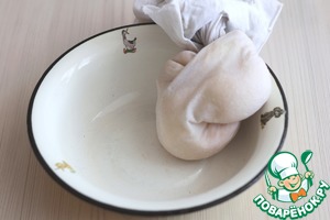Поместить картофельно - луковую массу на кусок плотной ткани и хорошо отжать.