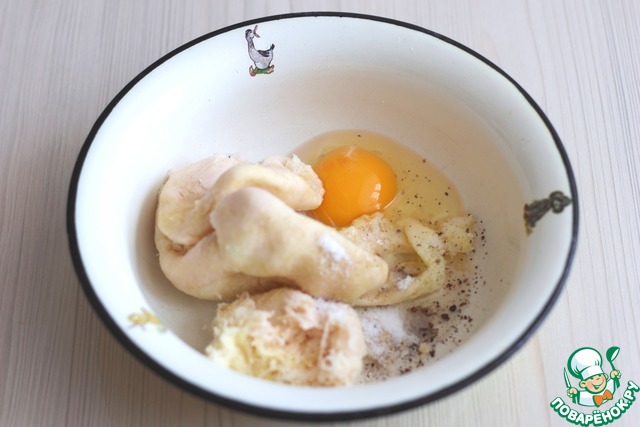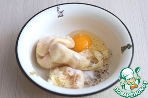 Добавить к картофельно - луковой массе яйцо (1 шт.), добавить соль и черный молотый перец по вкусу.