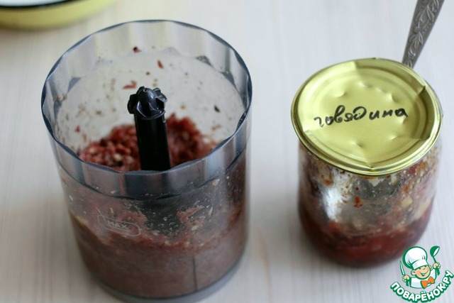 - Тушенка (Домашняя тушенка (говядина, свинина, мясо кролика, мясо утки, курицы, индейки)) — по вкусу